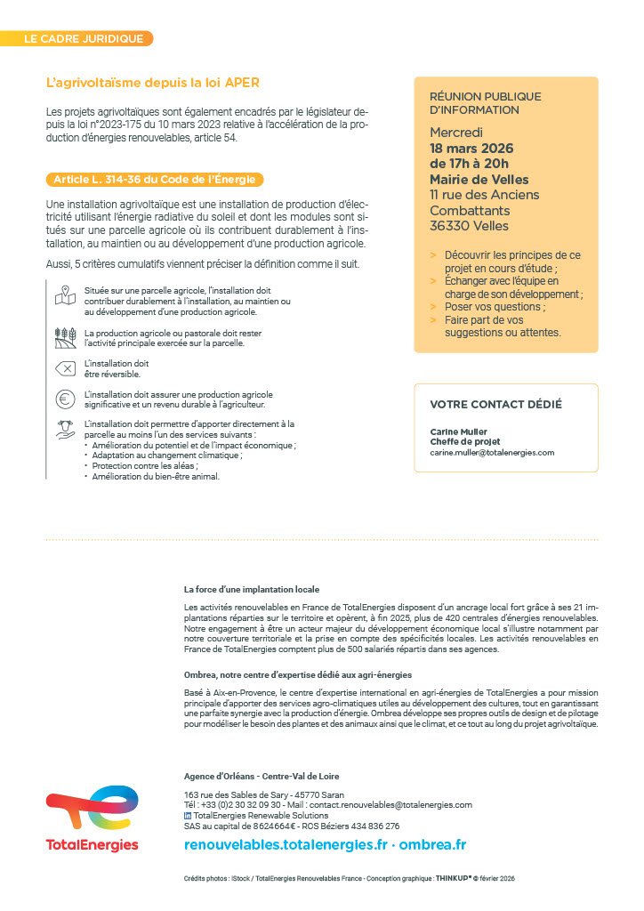 Projet agrivoltaïque : Mercredi 18 mars 2026 de 17h00 à 20h00